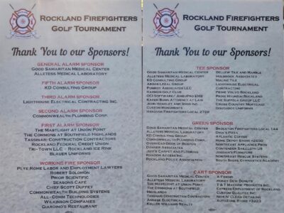 Rockland, MA – Today, Alletess Medical Laboratory is proud to sponsor and participate in the local Rockland Firefighters Golf Tournament at Ridder Farm Golf Course. Alletess is grateful for the hard work our fire fighters and first responders put in to protect and serve the local community. Alletess Medical Laboratory was founded in Rockland over 40 years ago and our corporate headquarters is still based in Rockland, MA.